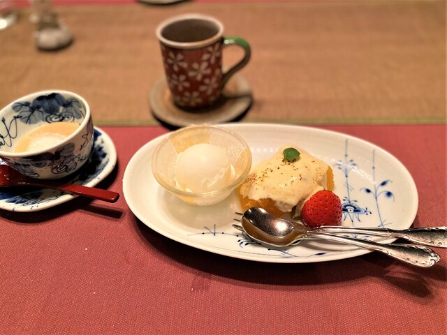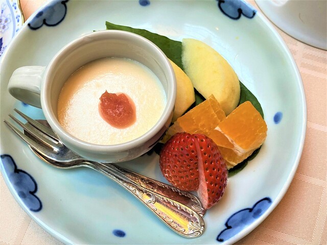 最後にデザートをいただいた後、落ち着ける場所でゆっくりしたあと湯に浸って、幸せな眠りに付きました。