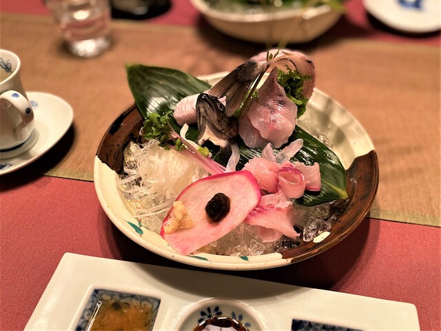 次は、玄米スープと岩魚の姿作り、鯉のあらいです。