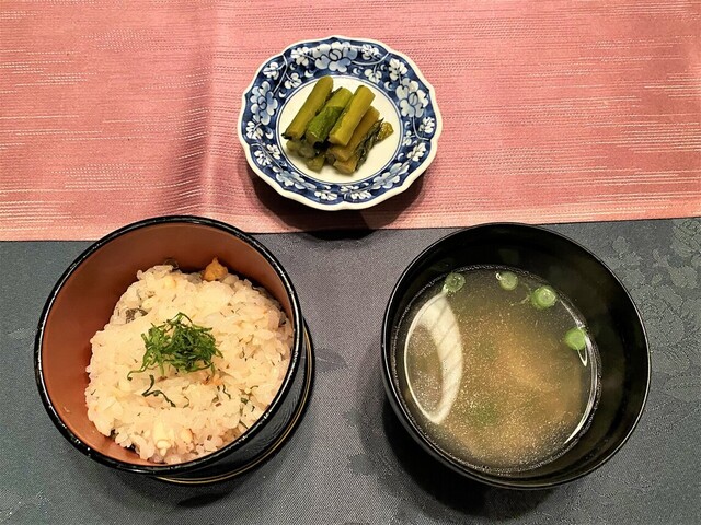 最後にふきの炊き込みご飯と、ジェラートや苺のデザートをいただきました。