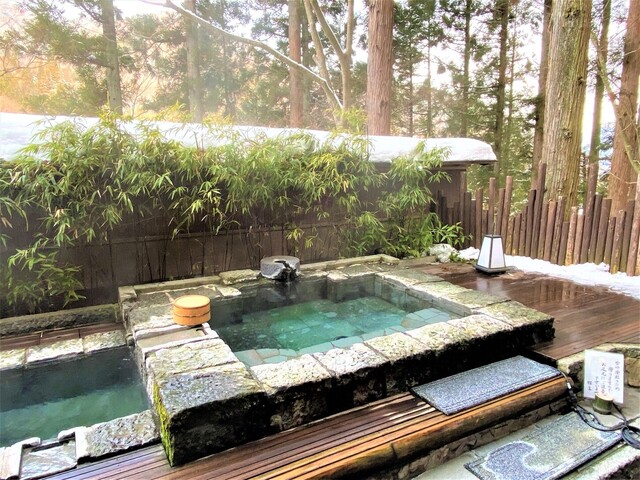内湯と外湯に交互に浸かったりしながら、近くに残る雪を満喫しながら、身体をトリートメントすることができました。
