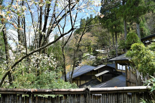 4月の中頃で、ちょうど旅館の周りに咲く桜が出迎えてくれました。