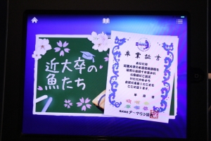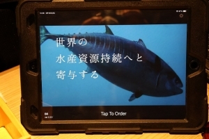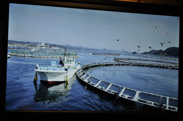 料理が出てくる間、タブレットで近畿大学の養殖の研究成果を見る。