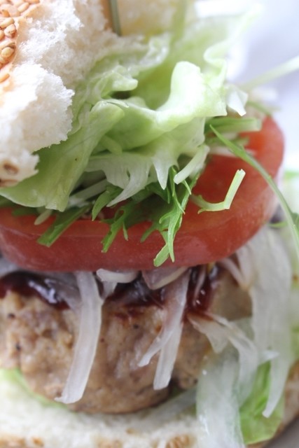 夢前の新鮮野菜と桃色吐息をはさんだ、その名もYKDバーガー。