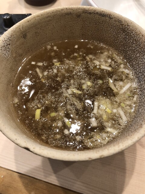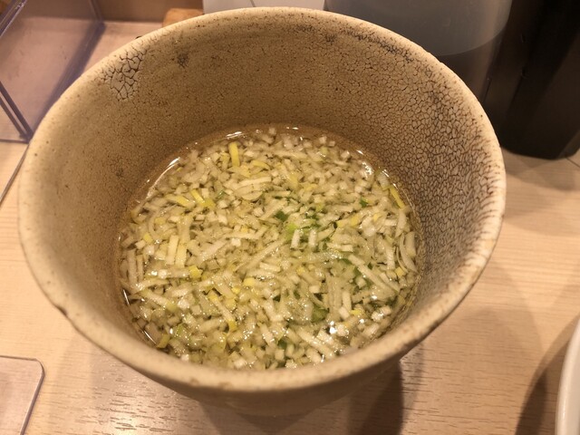 いやー、なんとチャーシューが立っている!富士山みたい(笑)説明書にはまずは麺から食べてみようということだったので、早速麺から食べました。卵の白身が絡んでいるでしょうかね。ちょっとねばっとした感覚があるんですが、それも美味しい要素です。そして、なによりもそばが旨い。キング製麺ですね。いやー麺が旨いんですよ。麺が。次に、塩をかけて食べるということだったので、その通りに。そして、確かに塩をかけてそのまま昆布出しにつけなくても食べきっちゃいそう。。。やばい、うますぎる。久しぶりに出会えましたね。次に、いよいよ昆布水の出し汁。こちらにつけて食べるともう最高です。チャーシューもいい。ボリュームも結構あるんですよね。200gの麺の量と書かれていましたが、ボリュームがあります。するすると食べきってしまいました。最後に汁が薄くなるので、秘伝のタレを数滴たらすと美味しさがまた違う。と思いきや、店舗スタッフの方がスープ割を欲しているのが分かっているのに、スープを出してくれる。いいですねー。このホスピタリティ。スープも最後まで飲み干しました!店員さんの挨拶もいいんですよ。サラリーマンには「お仕事頑張ってください」とか言ってくれるし。こういった対応も抜群だと思いました。全ての麺(?)で良かったです。また来たいけど、行列でいっぱいそうですよね。