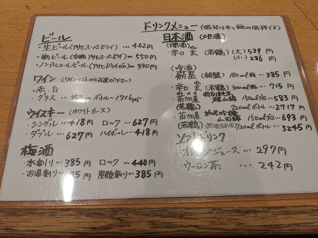 午後4時に開店。店内は結構広い様子。次々とお店に入っていきますが、残りカウンター席も少なくなったようで、私でギリギリセーフ。危ない危ない。順番にドリンクを聞かれたので、まずは生中(462円)から。今時、こんな安いのはないですよね。すぐに生中が出てきて、更にお通しが2つ。え?2つも出てくるの。それも美味しそう。これで十分じゃんって思いながら、まずは生中から。そりゃ美味しいですよ。そして、お通しを食べると、これも美味しい。なんだ?この店は。そして、目の前にいる厨房の各スタッフさんの動きが無駄がないんですよね。注文をテキパキとさばいている様子。あれだけ注文をされているのに間違って料理を出しちゃったなんてないし、注文されたらすぐにドリンクも出されている。この動きを目の前にして凄いなぁって関心しました。そして、接客も旨いんですよね。