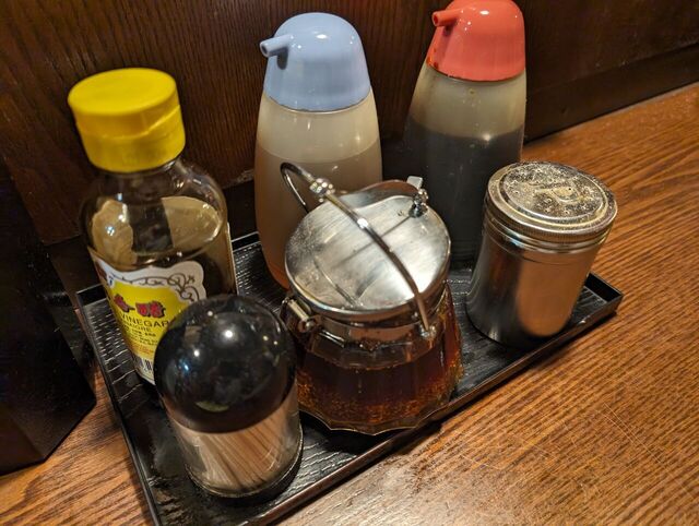 途中から卓上の自家製ラー油を投入すると、味が大きく変化し最後まで