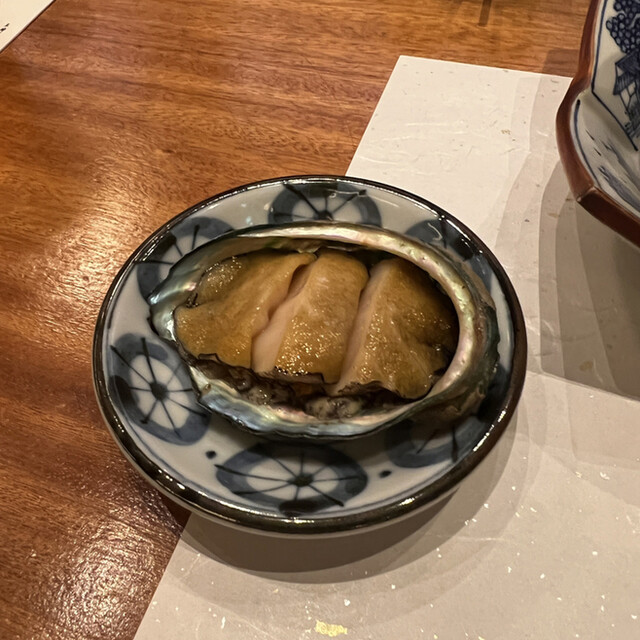 アワビの肝で解いたスープにアワビを30秒くらい入れて食べる。