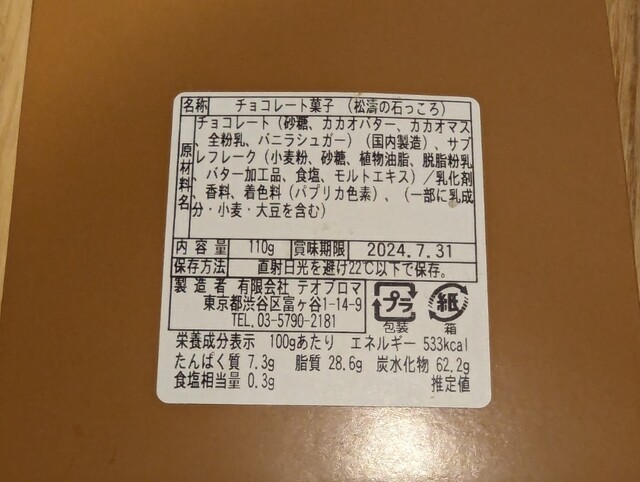 松濤の石っころはクランチチョコレートです。ザクザクとした食感とミルクチョコレートの程よい甘さのハーモニー。