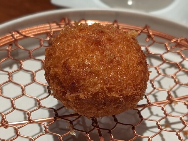 次は「きた福のたらば蟹コロッケ」。系列の蟹料理店「きた福」のたらば蟹を使用しているとのこと。蟹の身が多く、コロッケの占める割合がかなり高いと思われ。至福の逸品。ペシャメルソースとの相性がたまりません。何もつけずに美味しい、食べたい。濃厚な旨味がとろりと広がる。