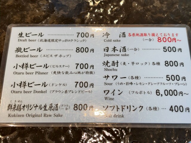 おまかせコースを注文しました。夫は群来膳オリジナル生原酒。私はソフトドリンク(烏龍茶)を注文しています。
