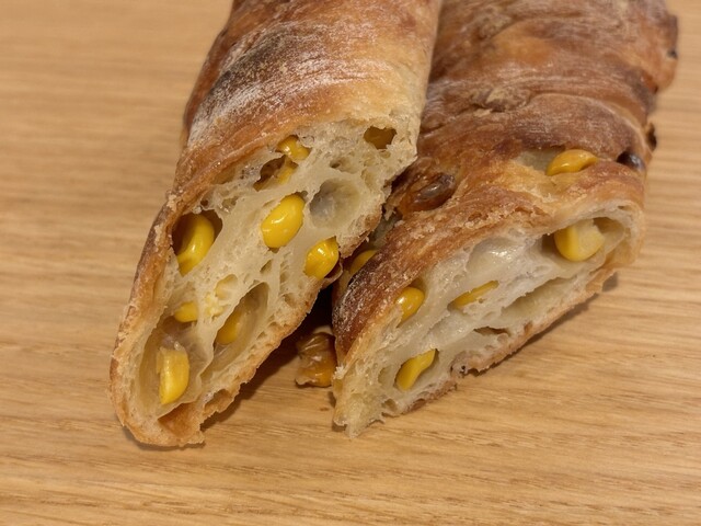 粉の甘みとコーンの甘みが重なり、コーンポタージュのような味わい。とうもろこし好きにはたまらないパンです。