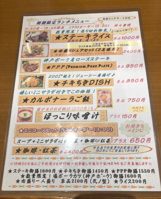 原材料の高騰や社会情勢で価格が変動してる場合や営業時間が異なってる場合がありますのでご容赦下さい。