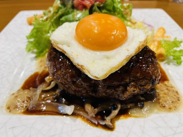 オーナーが修行中にホテルのレシピを自己流にアレンジしたハンバーグ。
