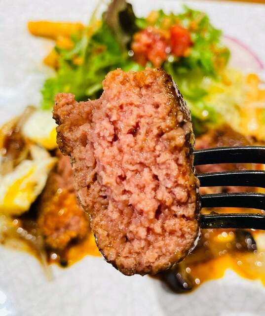 肉汁でごまかさないガッツリ肉が詰まったパワフルハンバーグ◎←断面リフト見て、パォーン!(笑)