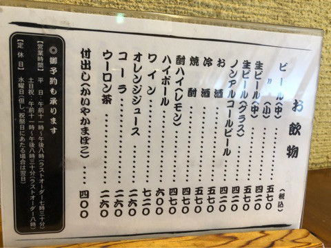 ※あくまで訪問時の価格で消費税や社会情勢で価格が変動してる場合や営業時間が異なってる場合がありますのでご容赦下さい。