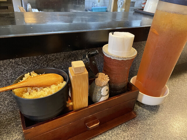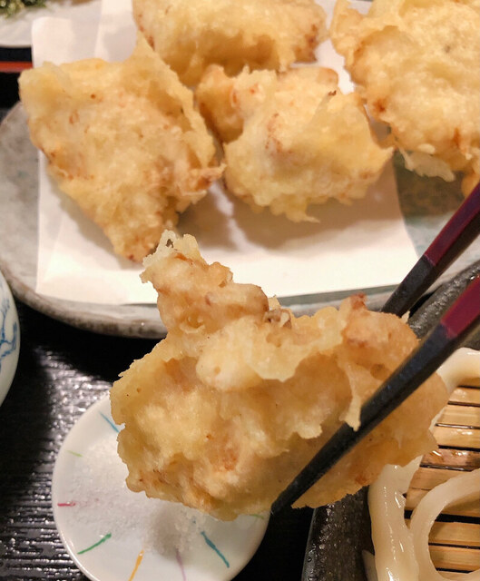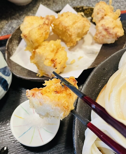 店主が揚げる天ぷらなどの素材は湊川市場のものを。毎日の新鮮な食材もうどんを引き立てます。