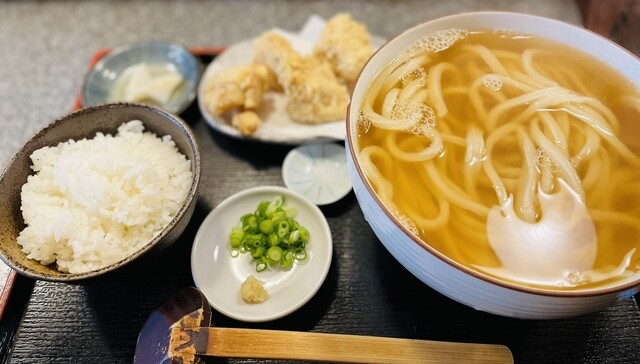 手打ちうどん、出汁、かしわ天、ご飯とどれをとってもパーフェクト!
