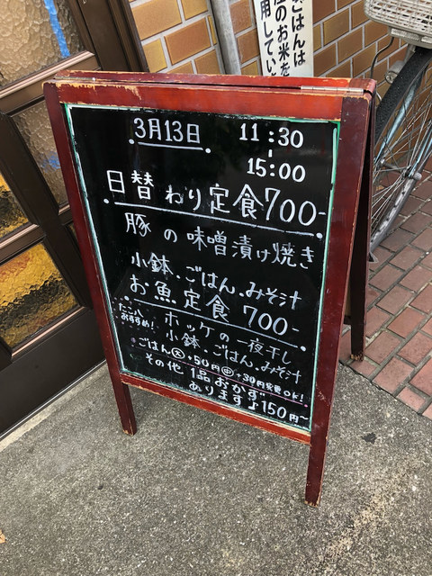 ランチタイムの昼11:30からは焼き魚、煮魚などのおさかな定食やとんかつ、ハンバーグなどの日替わり定食。