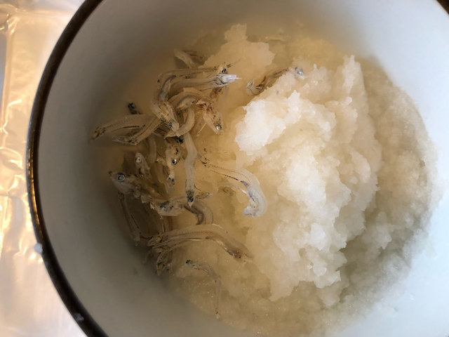 ⚫︎じゃこと大根おろし←今回はおっちゃんがポン酢を持ってきてくれたんで醤油とブレンド。ご飯に合う◎