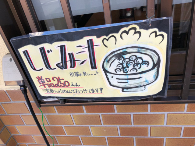 玉子味噌汁プラス50円、豚汁プラス100円、しじみ汁プラス100円(税込)