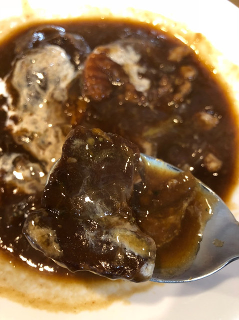 スプーンでどこをすくっても牛すじが乗っかってくるだけでなく、どんだけ牛肉を入れてると思うくらいルーに溶け込んでいて、濃厚でコクがあり食べた後のインパクトが凄すぎる。