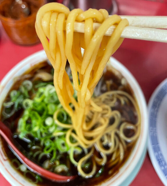 濃色の醤油スープの味わいは、初めての方には驚きを、二度目以降の方をやみつきにさせる魅力があります。