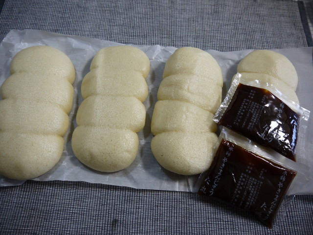 中にはまんじゅうが4つと味噌たれパックが2つ