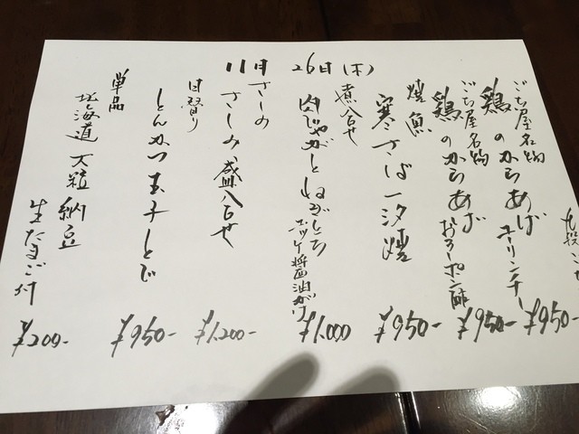 最近 めっきりうかがえておりませんが、本日同僚達は、鶏の唐揚げ定食を食べに行ったと聞いてます。やはりごち屋のから揚げは美味しいとのこと。個人的にはダイエットも完了しましたので、そんなことは気にせず、鶏の唐揚げ定食大好きな同僚と食べに行きたいと思います。・・・・
