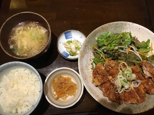 なんといっても鳥のもも肉1枚をつかった 大人気の 鳥のからあげ定食があります。その日の食材でのメニューが変わる 日替わり定食