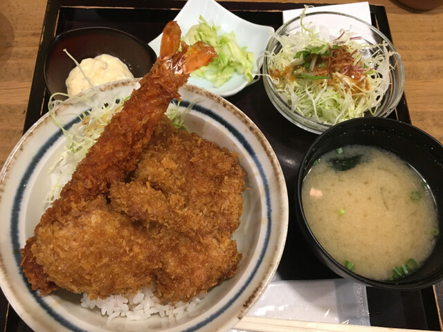 合い盛り丼から エビフライが無いだけですが、 ボリューム的にはこちらの方がよいかと思います