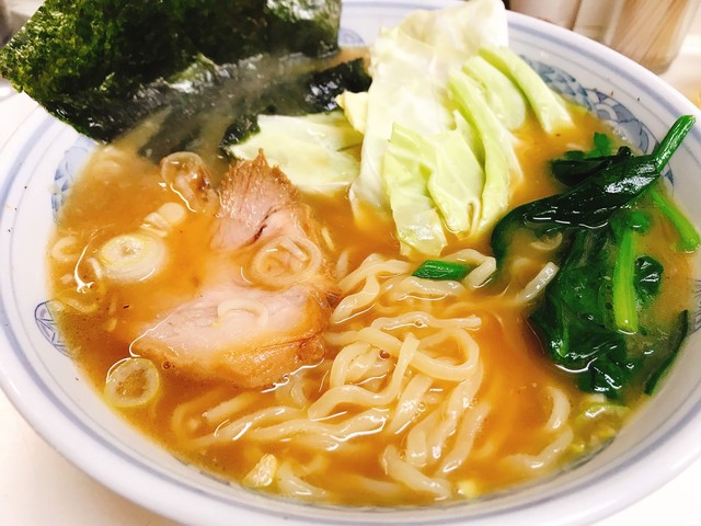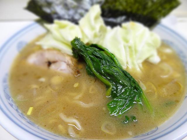 味が濃いめのスープに対しキャベツとほうれん草が清涼感と歯ごたえを出してくれて非常にバランスの良いラーメンに仕上がっています。