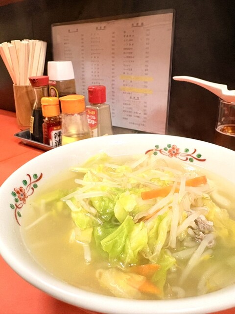 シャキシャキの炒め野菜が山盛りで、旨味たっぷりのあっさり塩スープと中太麺の相性も抜群!これで450円は驚異のコスパ。ランチタイムは常連さんで満席になるのも納得の美味しさです。店内は昭和レトロな雰囲気で、どこかホッとする空気感。ご夫婦で営まれているようで、接客も温かく丁寧で心地良かったです。お一人様はもちろん、地域の方々の憩いの場としてもおすすめの一軒。