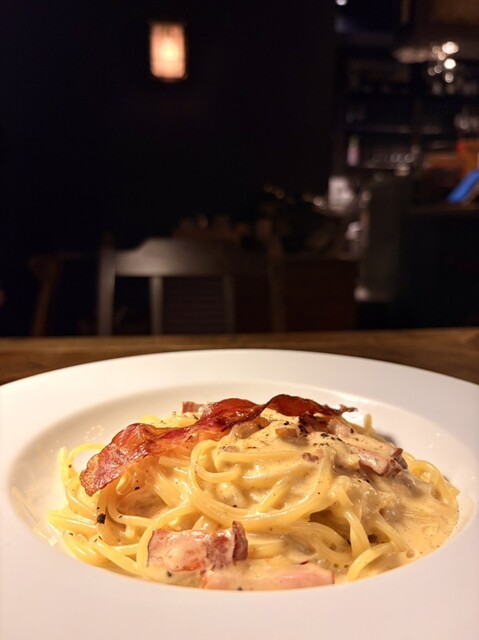 黒胡椒と鷹の爪がピリッと効き、濃厚ながらキレのある味わい。大好きなカリッカリベーコンのアクセントがGood!旨味がしっかり詰まっていて、〆に選んで間違いない一皿。個人的にもかなり好みでした。^_^✨