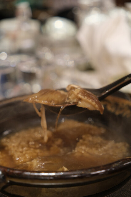 牡蠣油と醤油ベースの土鍋の中にはメジロサメのフカヒレが。