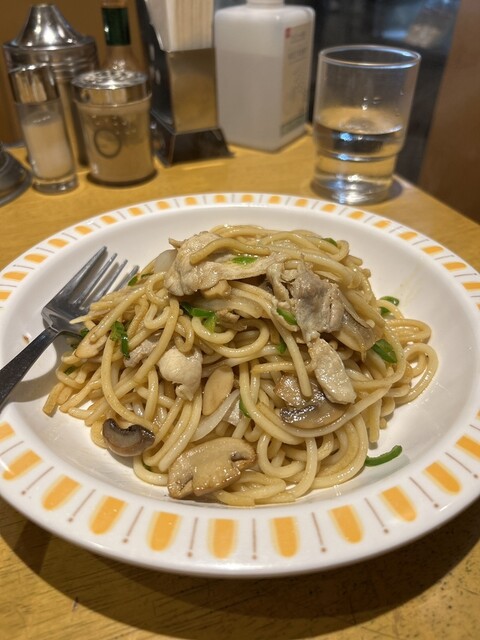 はい並びました。13:00到着で15分ほど待ち入店。アツアツのナポリタンにたっぷりと粉チーズをかけて食べました。