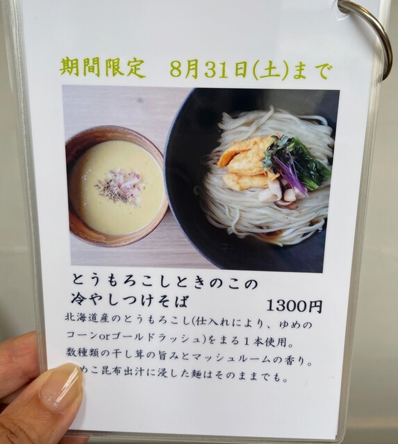 期間限定のとうもろこしときのこの冷しつけそば