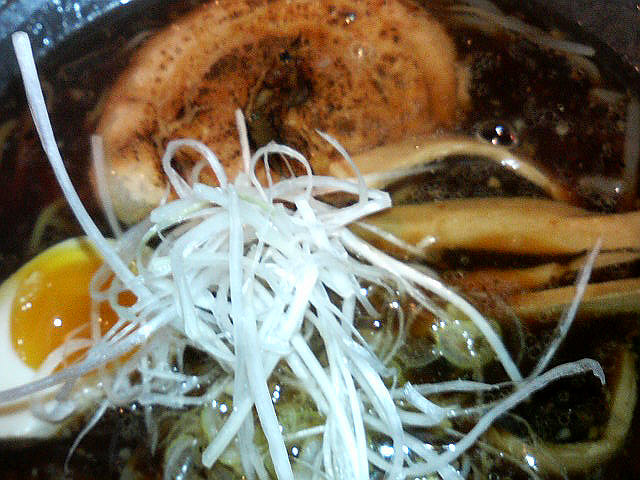 具には、半熟玉子、炙りチャーシュー、メンマ、白髪ねぎ、きざみねぎなどが入っていました。