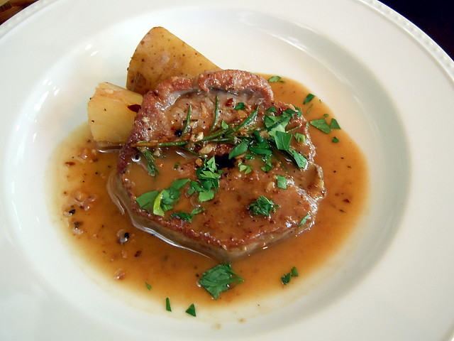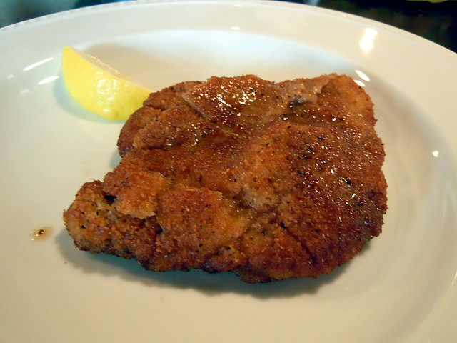 私のメインは肉料理で、牛肉のカツレツ レモン添えでした。