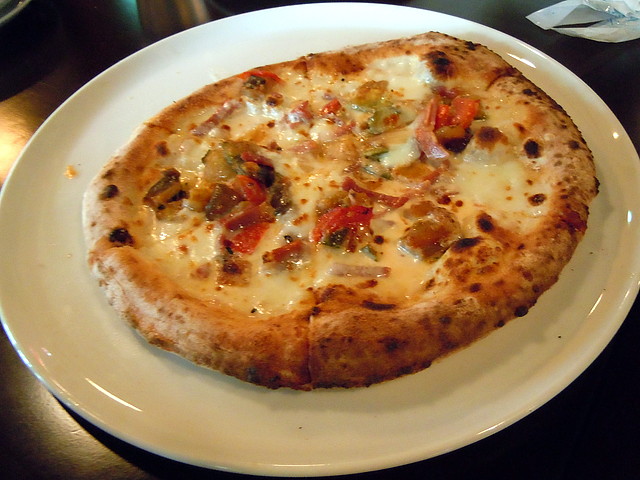 ハム、カポナータ、モッツァレラチーズのピッツァ