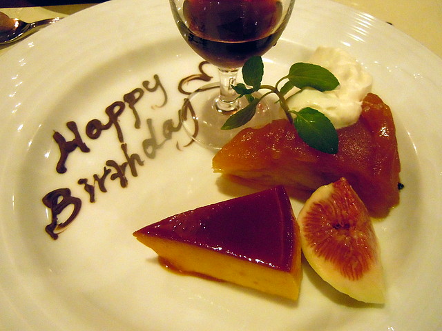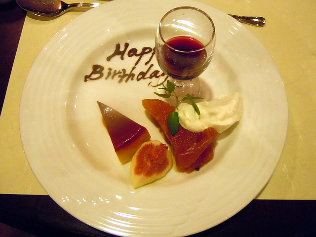 ドルチェは、予約の際に家内が誕生日であることを伝えていてくれたので、チョコレートでお皿に文字を書いてきてくれました。