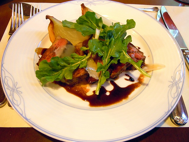 牛肩ロース肉のグリル タリアータ仕立て バルサミコソース