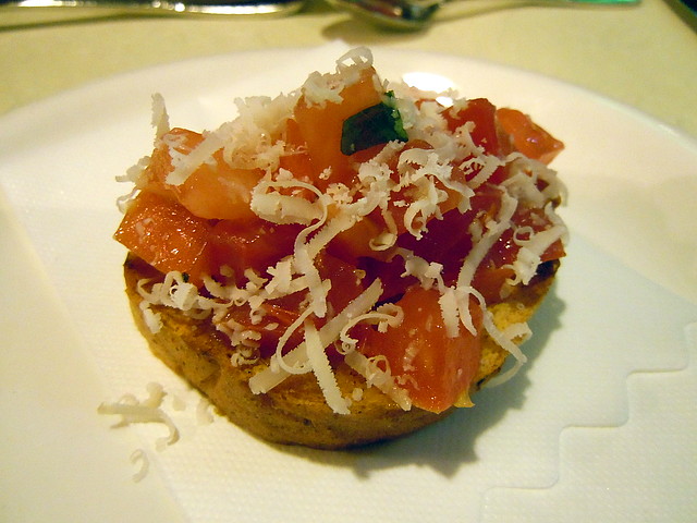 まずはブルスケッタです。前回もいただきましたが、美味しいです。