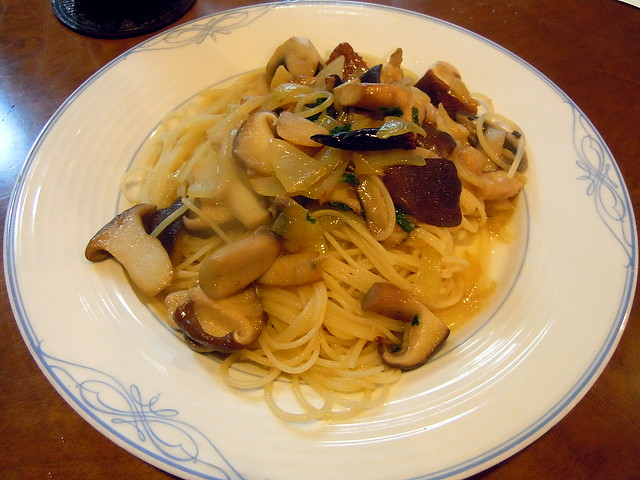 木の子のペペロンチーノスパゲッティーニは、木の子がたっぷり入ったピリ辛味で、美味しかったのですが、子供にはちょっと辛すぎたようです。