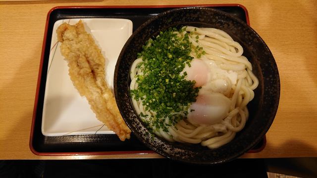 温玉うどん(3玉)温を注文し、げそ天を取りました。