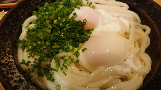 続いて温玉うどんです。普段は冷たいのを頼むのですが、温かいのにしてみました。
