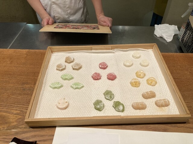 ランチタイムには列ができ、人気のメニューから売り切れになります。今回はすでに色々売り切れていたので、おばんさい御膳を注文しました。息子は量が多めの御膳を注文。天ぷらや色々賑やかなセットです。メインの出てくる前にということで、お茶と小松菜を出汁に浸した前菜が出てきました。少しづつ色々なおばんさいが出てきました。ご飯はおかわり1杯目は無料で2杯目は有料だそうです。デザートにはほうじ茶のババロアの下に葛餅が隠されているものを選びました。小さな可愛らしいデザートは好きなものが選べます。最後に小さい和菓子が出てきましたが、これがまた優しい甘さで感動です。とても素敵なランチタイムが過ごせました。ごちそうさまでした。