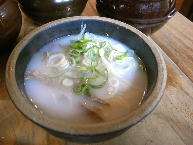 結構有名なお店で、ソルロンタンを作る専用の釜で24時間グツグツ煮こんでいるので、白濁したあっさりスープに癒されました。
