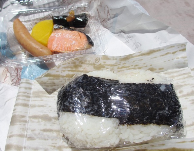 絶景を前に食べる蕗味噌入りおにぎりの美味さ、