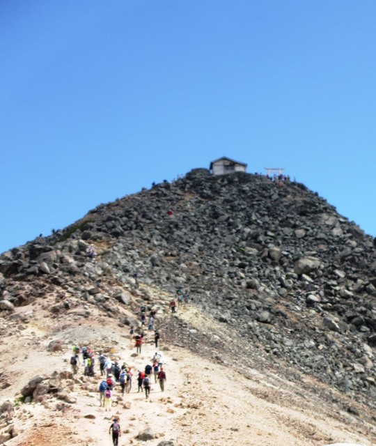 キツイ陽射しを浴びながら、急なガレ場を慎重に登り、ぶじ山頂に立つと、