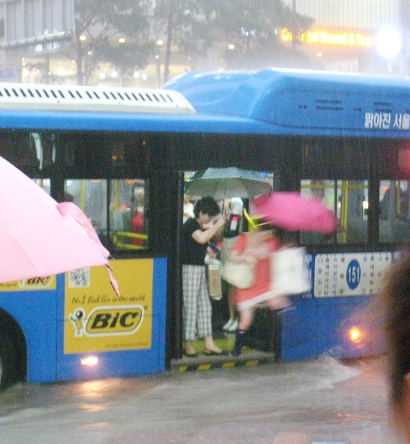 ソウルは異常豪雨。ロッテ百貨店前でもバスが冠水。